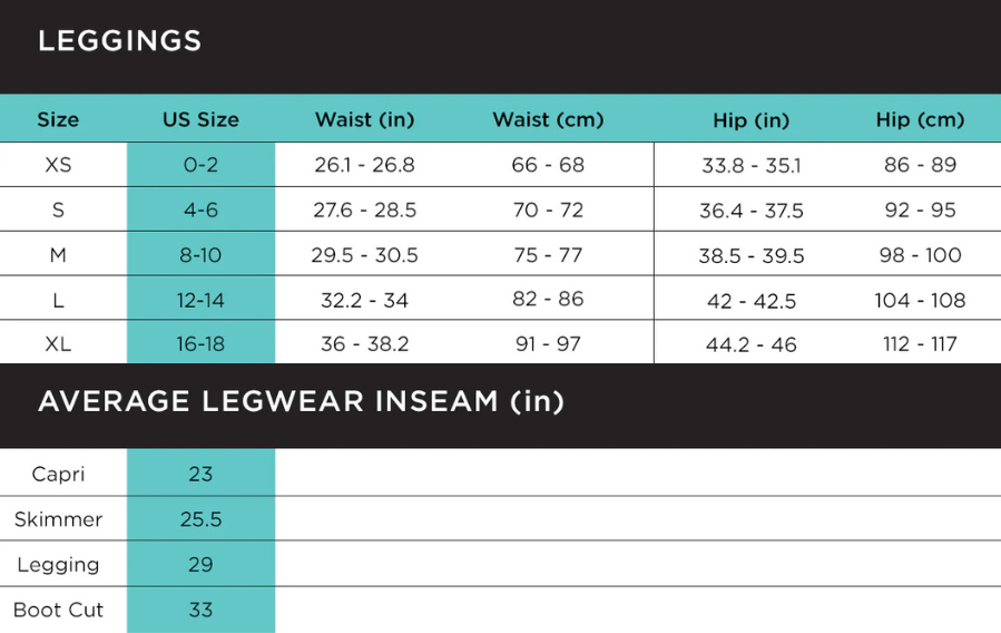 - Natural rise legging, slightly looser fit
